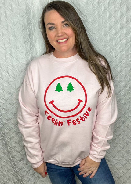 This adorable PINK sweatshirt will have you feelin festive! Made on a UNISEX HANES brand sweatshirt